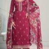 2. Complementing the top is a beautifully tailored bottom made from high-quality Santoon fabric, which offers both comfort and durability. Santoon is renowned for its lightweight and breathable properties, making it suitable for all-day wear. This combination of fabrics not only enhances the overall aesthetic of the outfit but also provides a flattering fit that drapes elegantly on the body. The set is completed with a stunning dupatta made from digital printed pure organza, featuring vibrant patterns that add a contemporary flair to the traditional ensemble. The dupatta is designed to flow gracefully, allowing for versatile styling options.